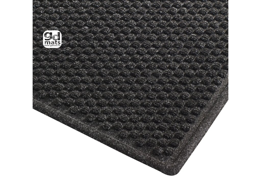 Textilný povrch je vysokotlakovo lisovaný do bublinového dizajnu na nezničiteľnom gumovom základe, vďaka čomu odolá aj najťažšiemu pešiemu zaťaženiu. Rohož má neprekonateľnú schopnosť zoškrabávať nečistoty z topánok, pričom si zachováva svoj skvelý vzhľad po dlhú dobu. Na zadnej strane má jedinečný protišmykový vzor.