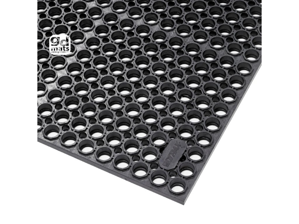 Popis produktu: Gumová rohož s drenážními otvory poskytuje pohodlnou a bezpečnou pracovní platformu v mokrých prostorách díky agresivnímu protiskluzovému povrchu. Velké otvory a vyvýšené výstupky umožňují tekutinám v mokrých prostorách nebo nečistotám v suchých prostorách přepadnout, čímž udržují povrch čistý a bezpečný.