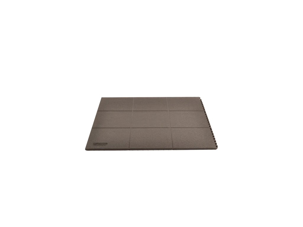 - Odolné gumové dlaždice veľkosti 91 cm x 91 cm možno jednoducho zostaviť pre pokrytie veľkých plôch alebo jednotlivých pracovísk, od steny k stene alebo ako ostrovy