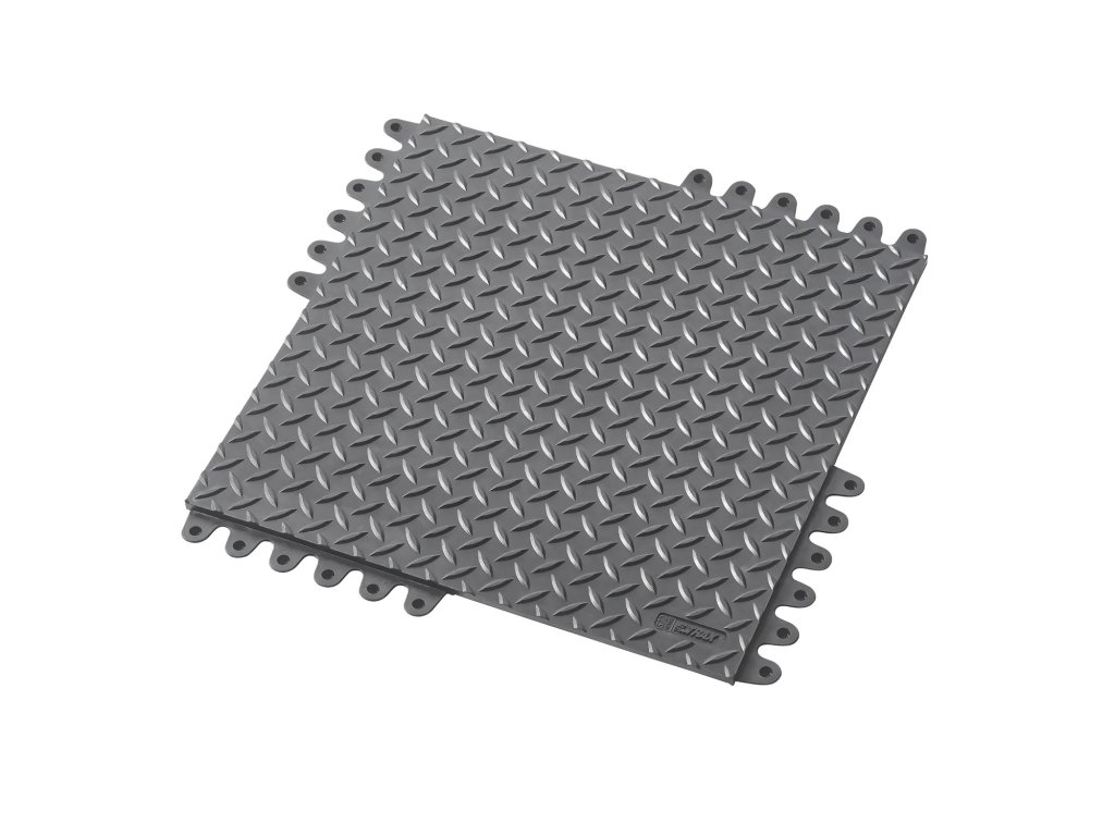 Extrem komfortables, robustes Anti-Ermüdungsmattensystem mit beliebter diamantierter Anti-Rutsch-Oberfläche, das einfach zusammengebaut werden kann, um große Flächen oder einzelne Arbeitsplätze abzudecken.