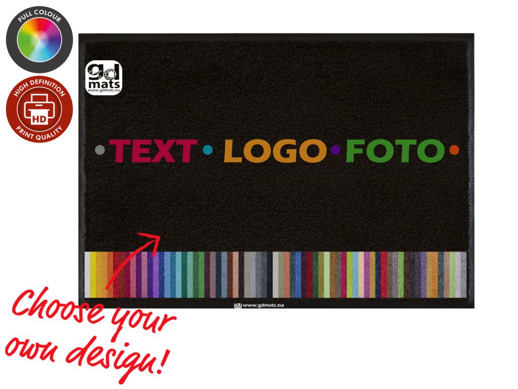 Das Design der Logomatte wird nach Ihren eigenen Vorstellungen erstellt, die Logomatte kann in jeder Farbkombination mit Text, Logo oder Grafiken auf Bestellung hergestellt werden.