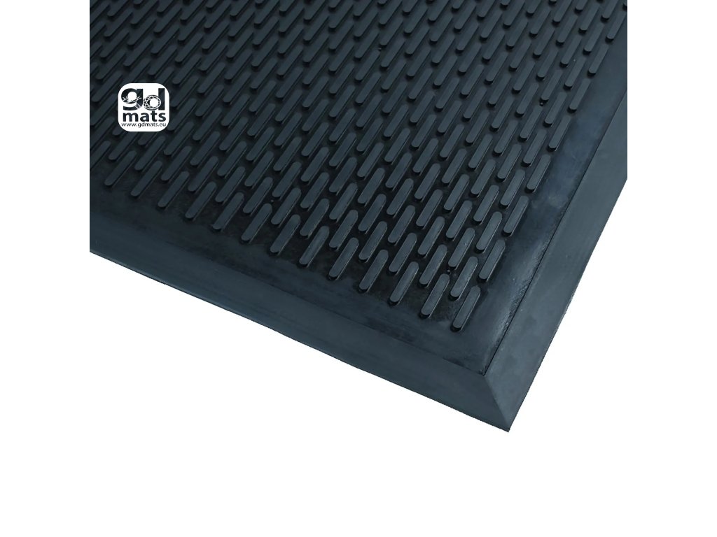 Hauptproduktvorteile: • Rutschfeste Gummimatte mit erhöhtem Rillendesign für bessere Traktion • Rutschfeste Unterseite verhindert ein Verrutschen der Matte • Abgeschrägte Kanten erhöhen die Sicherheit und ermöglichen ein einfaches Durchfahren von Trolleys • Erhältlich in Schwarz in der Größe 90 cm x 150 cm • 7 mm Dicke sorgen für ein niedriges Profil für einen einfachen Übergang