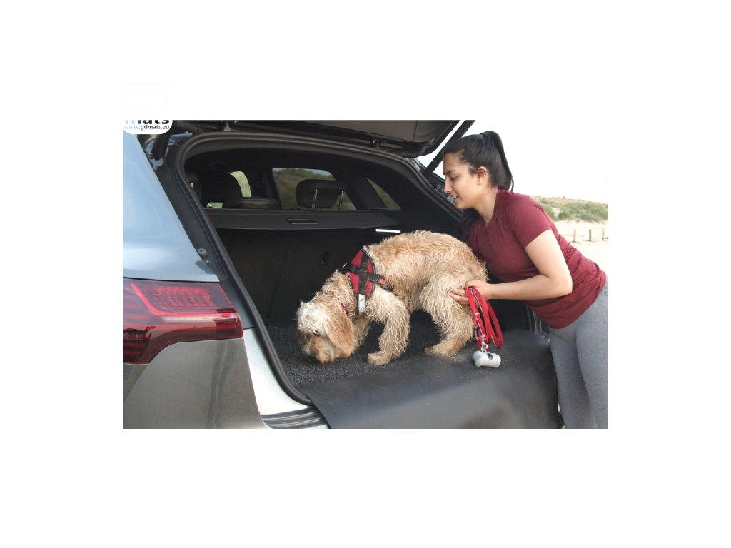 - Car trunk mat made of 100% recycled PET fiber with an impermeable rubber base