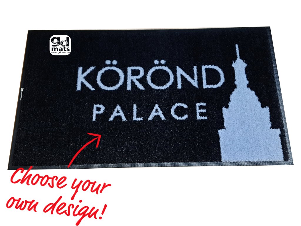 Dizajn rohože tvorí Vaša vlastná predstava. Rohož je možné vyrobiť iba v celkovom počte maximálne 2 štandardných odtieňov = 1 farba pozadia + 1 farba loga.