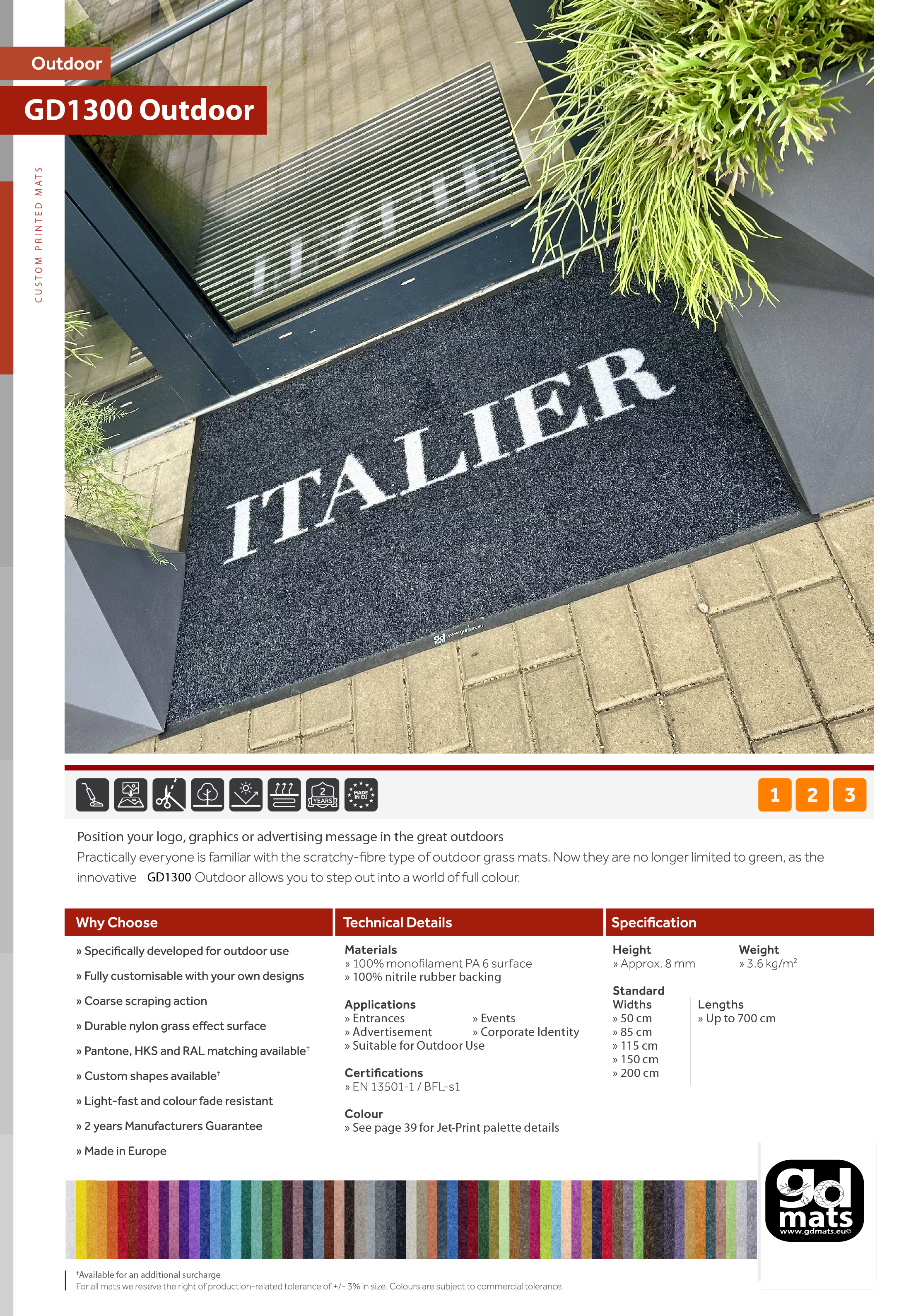 Hľadáte kvalitnú rohož s vlastnou potlačou do exteriéru? GD1300 Outdoor je Vaša správna voľba!