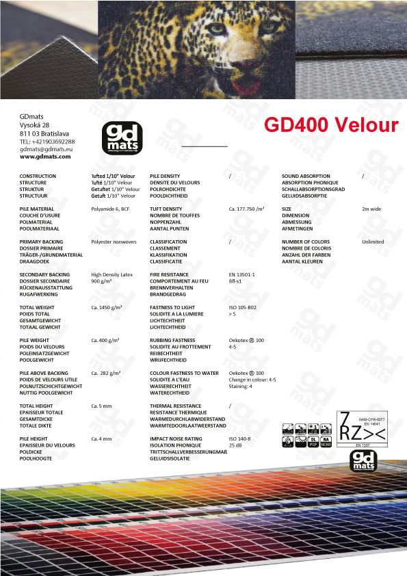 GD400 Velour - Veľtržný koberec s vlastnou potlačou - 2m šírka