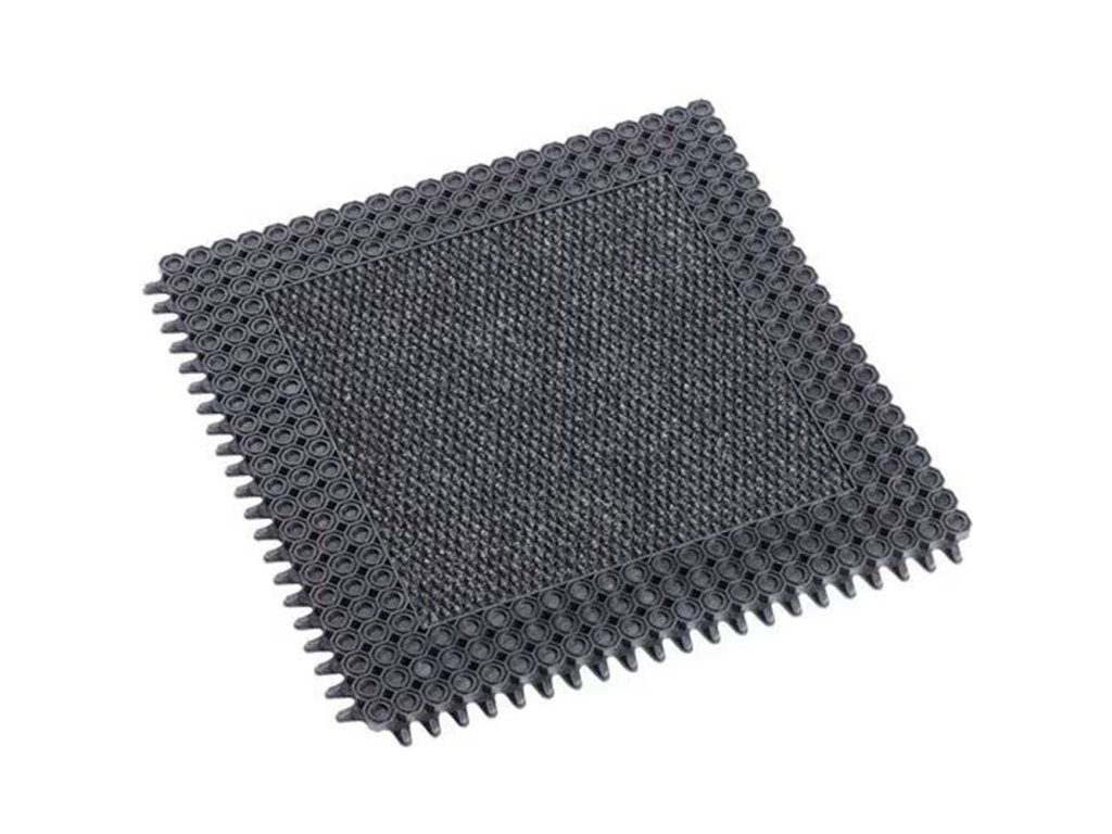 Gumové dielce prírodnej gumy sú tvarované v štýlovom osemhrannom drážkovanom dizajne s malými integrovanými otvormi, čo umožňuje bezpečný pohyb na vysokých podpätkoch a robí tento systém vhodným pre verejné vstupy budov. V kombinácii s husto tkanou kobercovou vložkou znižuje riziko pošmyknutia a pádu na vysokých podpätkoch. Hladký povrch spĺňa normy EÚ pre verejné vstupy a umožňuje pohodlný prejazd koliesok vozíkov, kufrov či invalidných vozíkov.