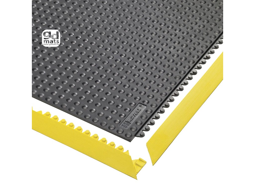 Gumené dlaždice pre vysokú záťaž, ktoré možno jednoducho poskladať a pokryť tak veľké plochy alebo individuálne pracovné stanice. Odolné voči priemyselným olejom a vhodné pre zváračské pracoviská.